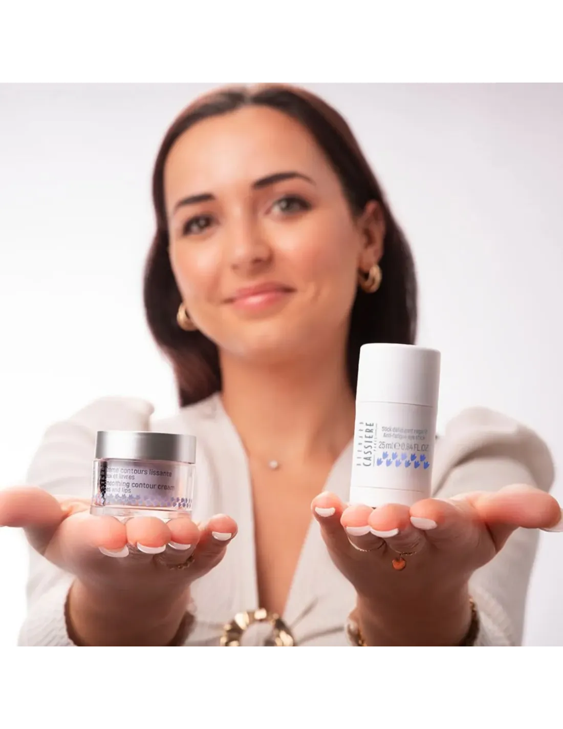 Votre regard est reposé, et l’apparence des marques de fatigue telles que les cernes et les poches est atténuée. Le contour des yeux parait tonifié, comme repulpé.