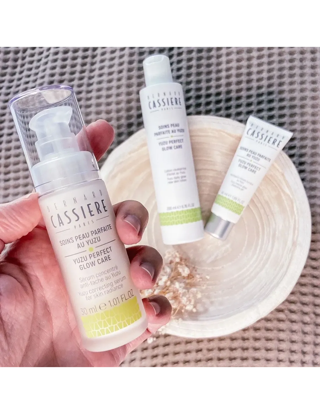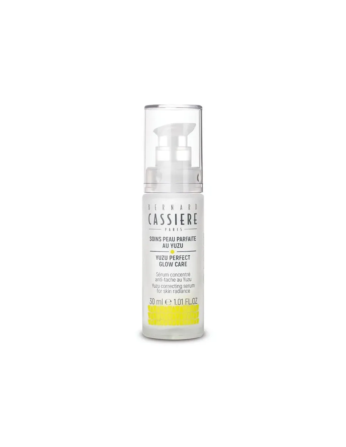 La formule de ce sérum est un concentré d’ingrédients hautement efficaces pour lutter contre l’apparence des taches pigmentaires de toutes origines (soleil, âge, hormones etc…). Il renferme des extraits d’origine naturelle de Yuzu et de Thé blanc, qui, combinés à un actif à effet resvératrol-like* et à un dérivé de vitamine C, reconnus pour leur grande efficacité, apportent uniformité, éclat et luminosité au teint.