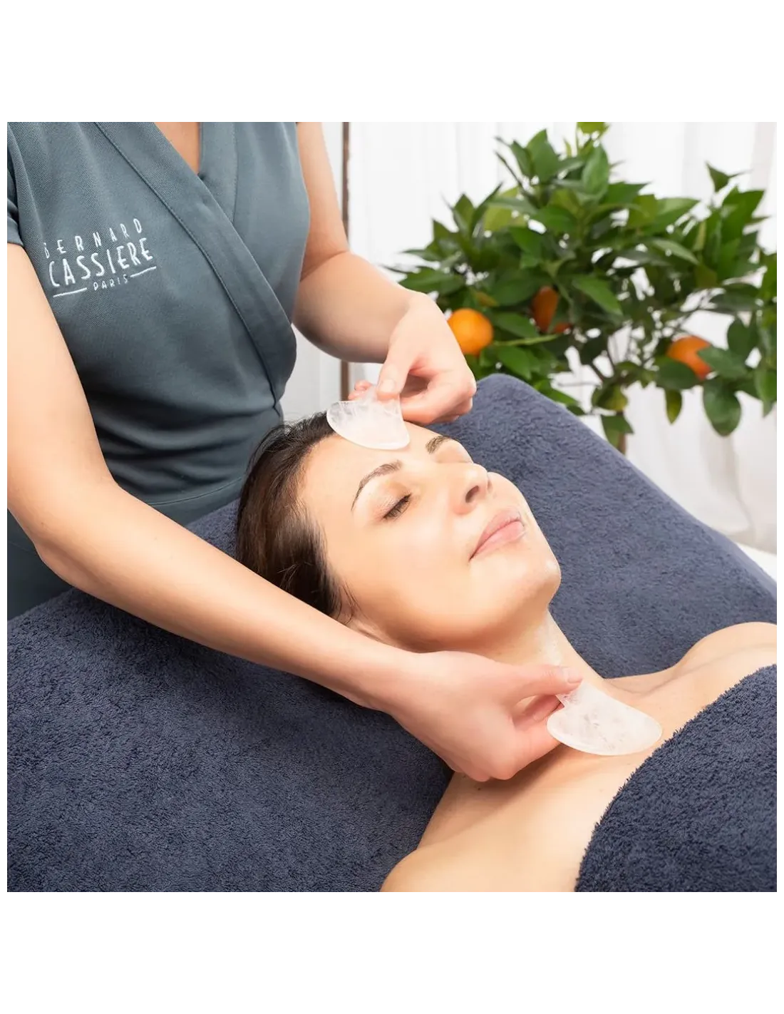 This treatment associates the technical manual know-how of the beautician to a massage with Crystal quartz Gua-Sha stones to improve the complexion, even and protect the skin, and helps it to breathe again. During 45 min, you can experiment a total give up and take time to balance your energies.
