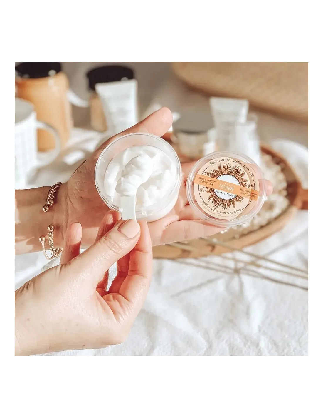 Need to relieve your skin of redness and tightness ? Even if you don't eat it, this yoghurt-textured mask still nourishes the skin and provides it with the nutrients it needs to stay balanced. The face is enveloped in softness thanks to the organic and fair trade shea butter and sweet almond oil it contains. The muesli nutrient complex [organic oat extract + probiotics] helps the skin to regain its balance.
